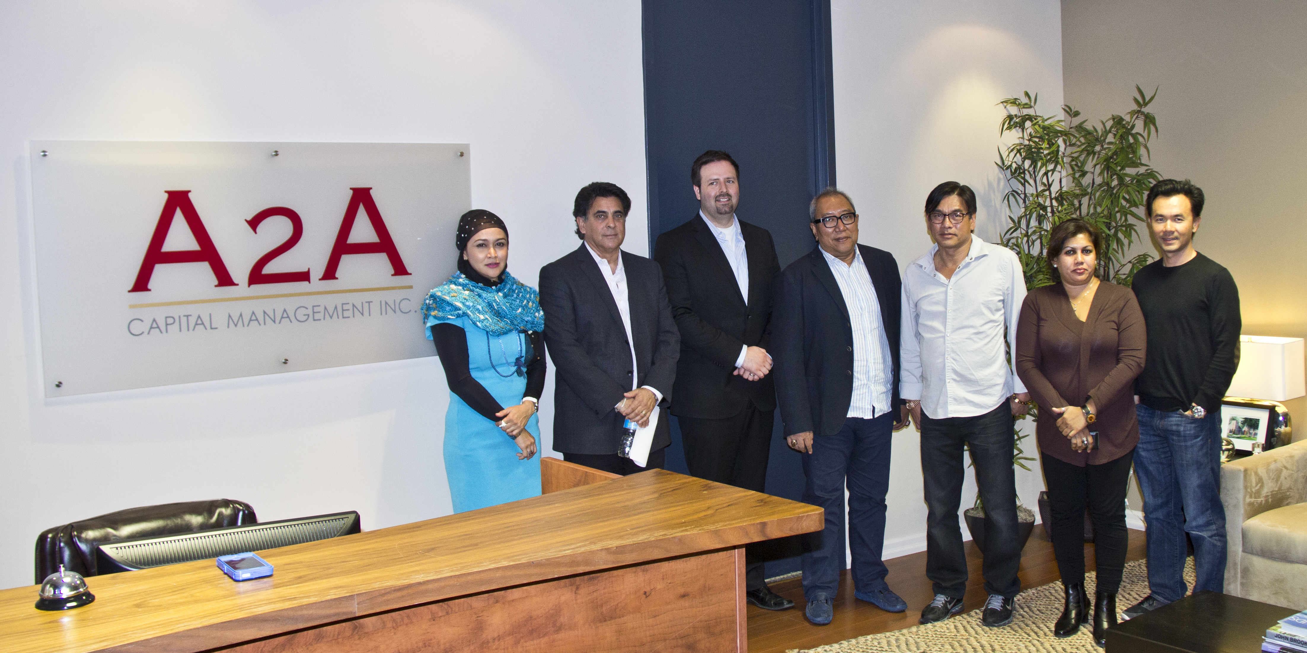 在Dirk Foo(丰亚主席兼行政总裁)、RohizanBinti Osman(马来西亚销售经理)及Jason Toh(营运执行副总裁)陪同下,马来西亚来宾与Steve Warsh(Terra Development)及Ryan Gueteer(Weston Consulting)等多名北美顾问一起参观丰亚多伦多办事处。